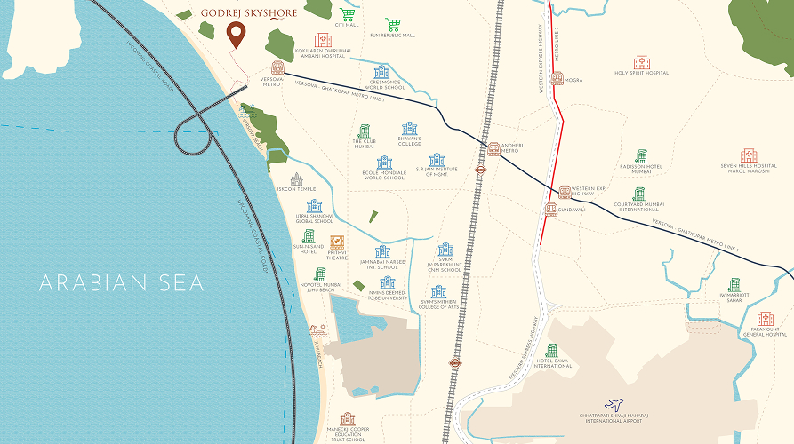 Godrej Skyshore is a premium residential project that blends elegance, comfort, and convenience in one of the city’s most desirable locales. Developed by the trusted Godrej Properties, this launch marks the brand’s strategic entry into the vibrant Versova micro-market. The project is packed with world-class amenities, including a modern gymnasium, infinity-edge swimming pool, landscaped gardens, children’s play areas, clubhouse, yoga and meditation zones, and jogging tracks. With 24/7 surveillance, smart access systems, and professional management, security and peace of mind are ensured for residents.